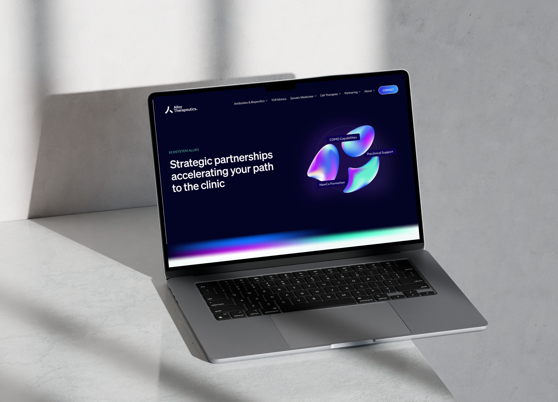 Over the course of a multi-year partnership, we’ve collaborated closely with Alloy to refine and evolve their digital presence as their platform, partnerships, and story have grown. Our work began with a single website and has grown into a comprehensive brand and user experience system—designed to scale across therapeutic areas, investor updates, and digital product launches.