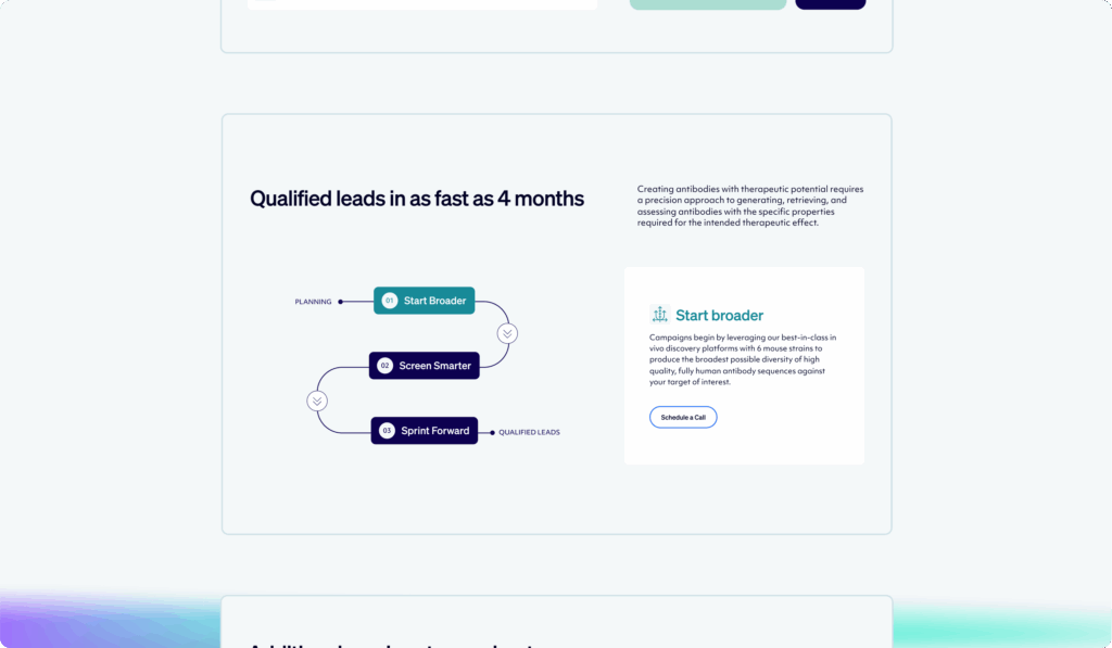 Alloy’s web presence is designed to meet the needs of multiple audiences—from biotech founders and partners to researchers and investors. We designed a site that makes complex science feel intuitive, with clear user flows, fast-loading pages, and bold headlines that reinforce Alloy’s positioning as a leader in biotech innovation.
