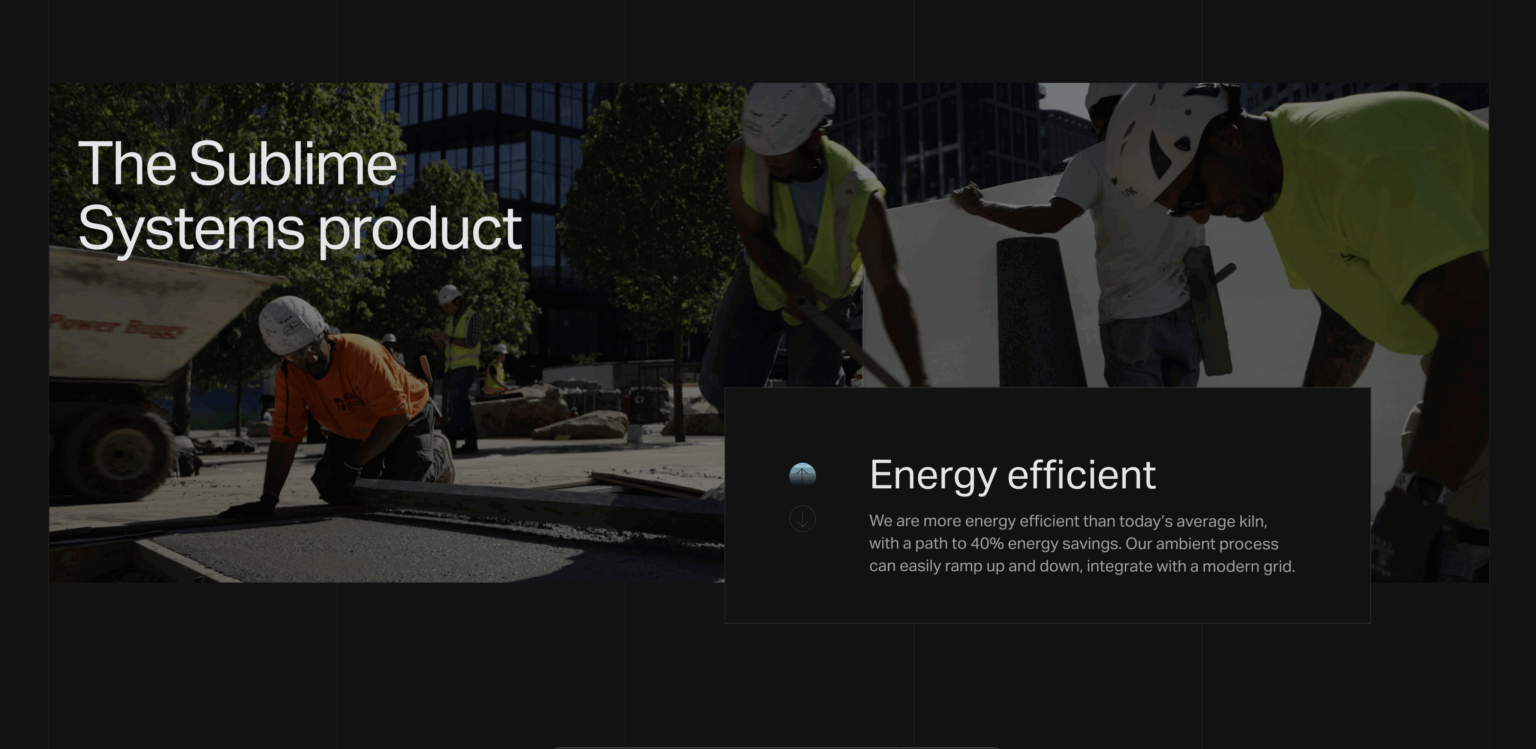 Inspired by the raw materials and physical forces behind Sublime’s process, we designed a visual language that feels elemental but refined. From textured images of aggregate and limestone to bold typographic statements, the aesthetic draws from both laboratory precision and real-world construction.